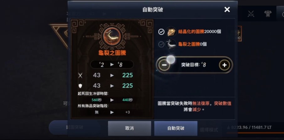 圖騰也可以被強(qiáng)化,沒往上1級(jí)城成功幾率就會(huì)降低。舉個(gè)例子,從0級(jí)到+7級(jí),成功的概率是70%*60%*50%*30%*15%*10%*5%,所以不僅要準(zhǔn)備好足夠的材料,還得有雄厚的紫金支援。