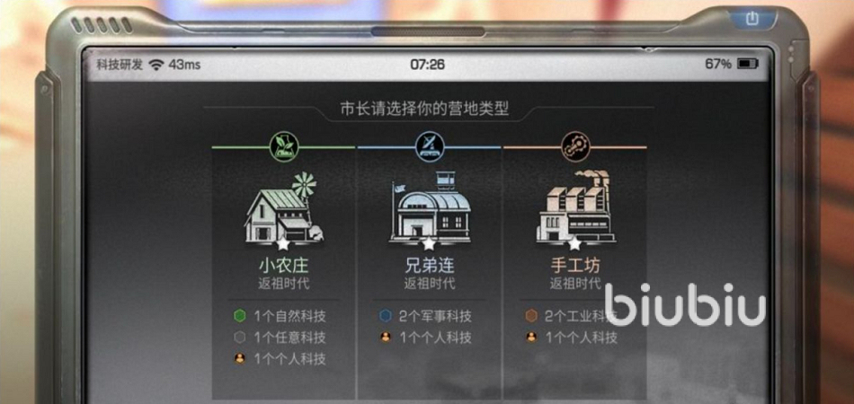 激活該裝置之后,點(diǎn)選“科技研發(fā)”裝置,可以發(fā)現(xiàn)有科研研發(fā)、個(gè)人配置、類型提升這三項(xiàng)。科技的研發(fā)有3個(gè)方向,如果你是那種比較休閑的玩法,那么選自然與工業(yè)就好。