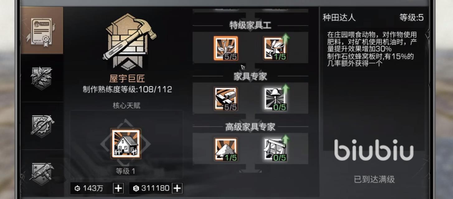 第三個(gè)推薦去造的就是建筑涂料了,同樣也是一個(gè)能帶來不錯(cuò)收益的物品,小伙伴們?cè)谔嵘f園等級(jí)、或者強(qiáng)化建筑等級(jí)的時(shí)候就會(huì)用到這個(gè)材料,而且是一個(gè)不能或缺的基礎(chǔ)材料。而想要制作它的話,小伙伴們就需要將自己的家具工職業(yè)提升為特級(jí)的級(jí)別了,同時(shí)還需要將建筑涂料這個(gè)天賦一并解鎖,如果缺了這個(gè)天賦的話,小伙伴們也是不能自己造這個(gè)涂料的哦。