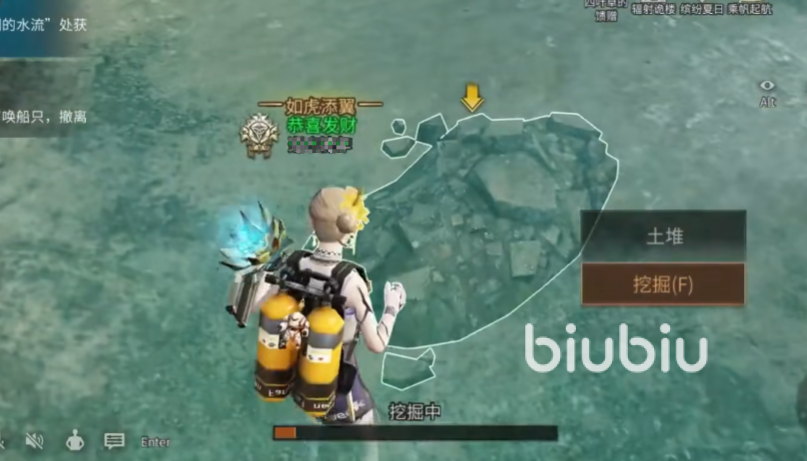玩家收集完所有的寶箱之后要回到最開始的位置,如果找不到位置的話可以點開任務菜單,點擊取消追蹤無聲島的秘密任務,然后再重新追蹤就會顯示位置了。找到之后將最后的寶箱挖出就可以完成這個任務了。