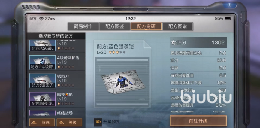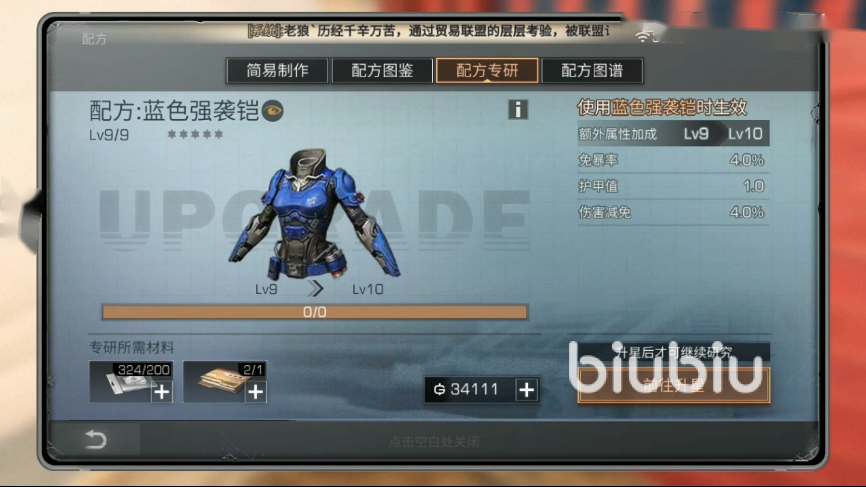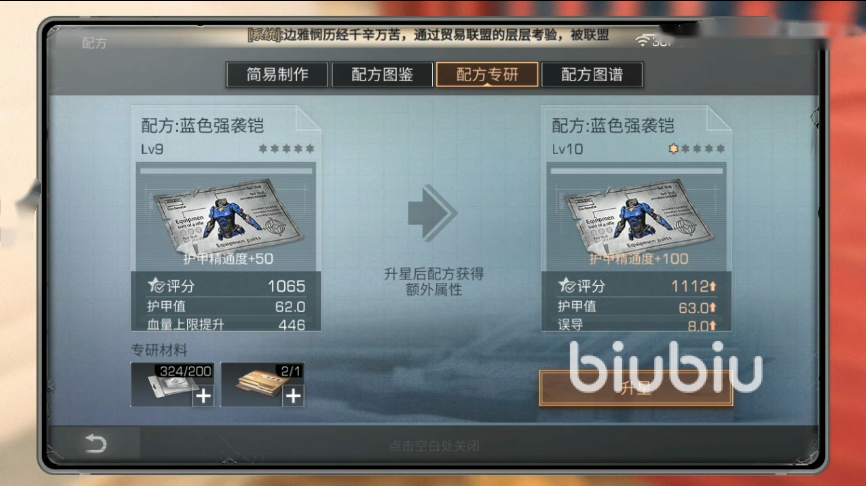 最后,想要獲得藍(lán)鎧還需要藍(lán)鎧的配方,大家平時(shí)可以通過(guò)采集的形式獲得配方殘頁(yè),再將殘頁(yè)進(jìn)行合成九游概率得到藍(lán)鎧配方了