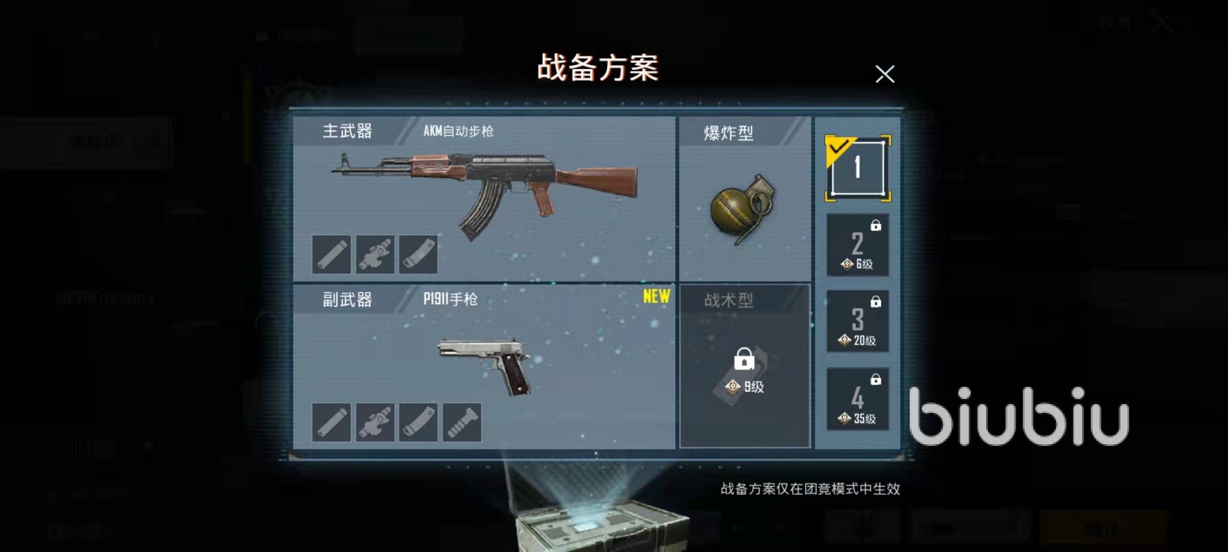 死亡競(jìng)技不同于正常的吃雞玩法,該玩法中需要玩家事先配備好武器,進(jìn)入游戲后不用搜集物質(zhì),使用自己事先配備好的裝備即可。戰(zhàn)備方面又分主武器、爆炸性投擲物、副武器和戰(zhàn)術(shù)性投擲物。初始的步槍只能選擇AKM和SCAR,手槍只能選擇P1911和P18C,爆炸性投擲物只有手雷一個(gè)選項(xiàng)戰(zhàn)術(shù)性投擲物則需要玩家等到9級(jí)展開。
