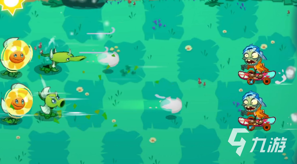 到了第二關(guān)就會(huì)出現(xiàn)滑板僵尸,三葉草加上向日葵就可以獲得更強(qiáng)的風(fēng)力,這個(gè)搭配上颶風(fēng)豌豆射手。就能夠輕松擊退滑板小鬼僵尸,造成的傷害也更高。通過(guò)第二關(guān),獲得新植物堅(jiān)果墻。