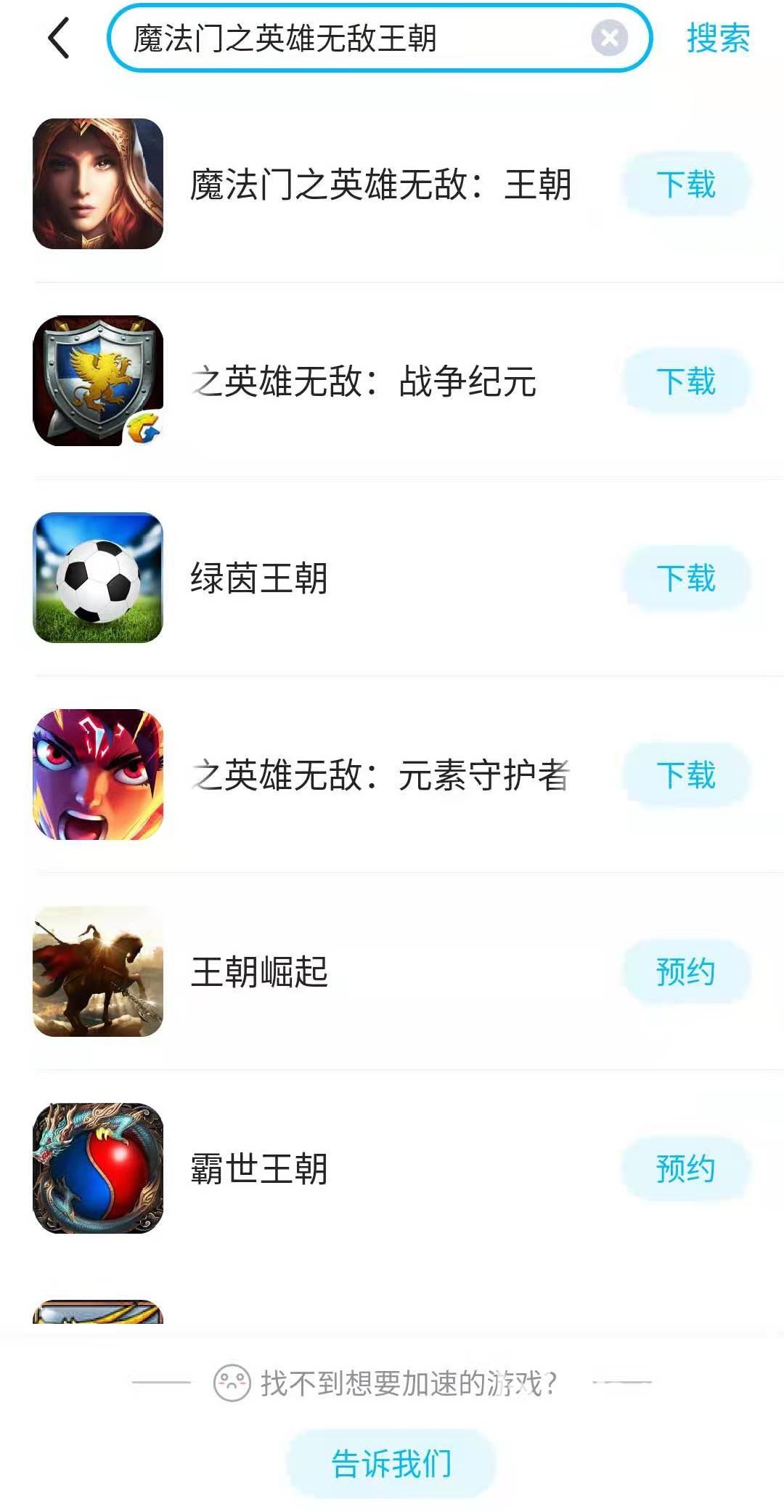 點擊以后會進入搜索界面,在搜索框中輸入魔法門之英雄無敵王朝,輸入之后即可在搜索結(jié)果中找到該游戲。找到后直接點擊右側(cè)的下載按鈕即可。