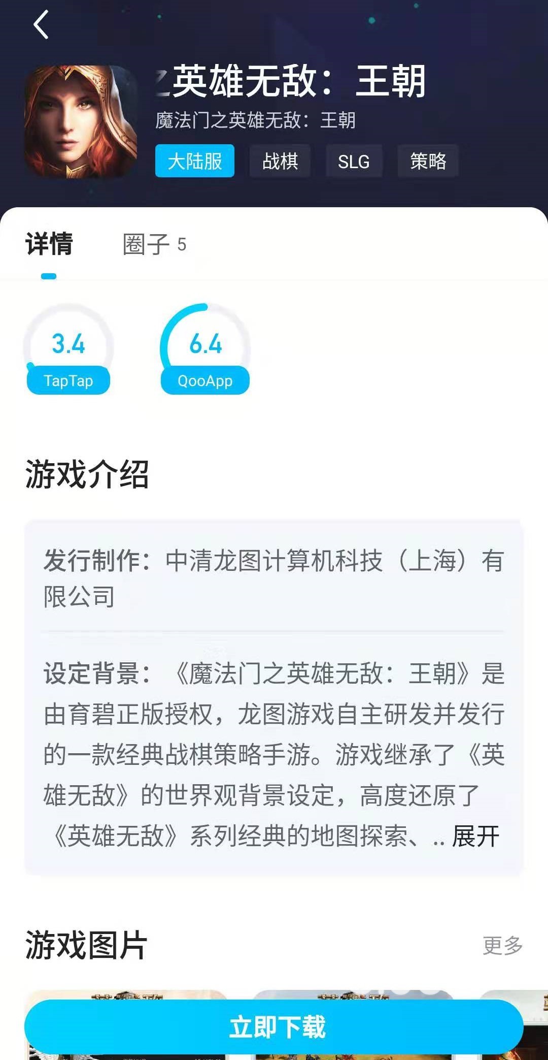 下載時間可能有些長,大家可能需要多等待一會兒。在等待過程中大家可以點進游戲查看游戲的具體信息,也可以和其他玩家在圈子里進行留言互動。