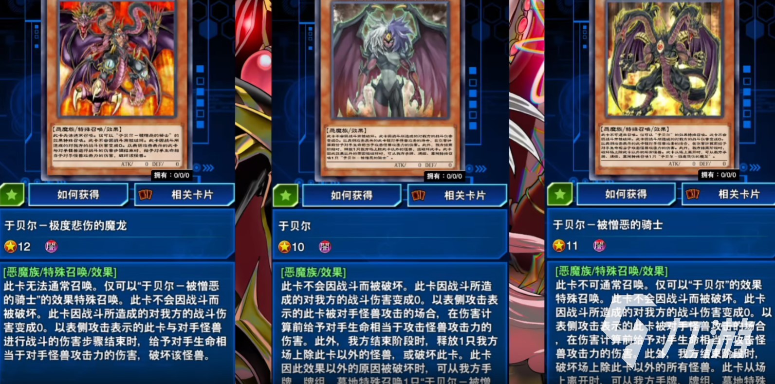 這次活動并沒有說可以解鎖人物使用權(quán),而是發(fā)出了3張尤貝爾化身系列的卡片,這三張卡都有一個共同的效果,他們都不會因?yàn)閼?zhàn)斗而被破壞。而因戰(zhàn)斗對我方造成的傷害為零,該效果是永續(xù),不進(jìn)連鎖。所以天罰是無法發(fā)動的。而魔龍?jiān)谂c對方怪獸進(jìn)行戰(zhàn)斗的步驟結(jié)束時,可以給予對方怪獸攻擊力數(shù)值的傷害,并且破壞該怪獸,該傷害不取對象,蠻強(qiáng)的。
