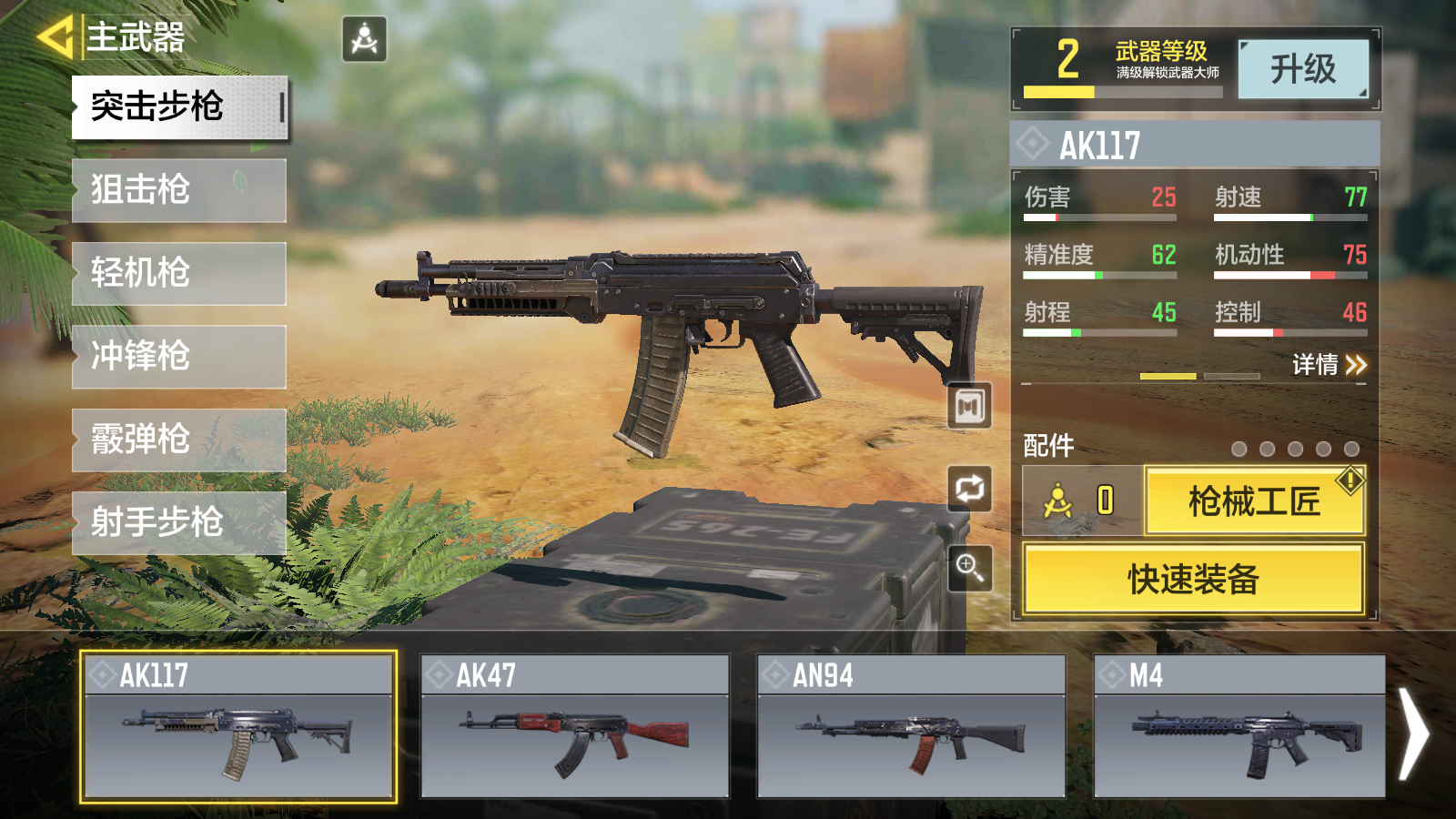 首先是突擊步槍和沖鋒槍這兩類(lèi)出場(chǎng)率最高的武器,突擊步槍方面AK117作為一直以來(lái)使用率最高的武器,在新模式中發(fā)揮也很穩(wěn)定。AK117有著穩(wěn)定的輸出傷害以及精準(zhǔn)度,獲取難度和上手門(mén)檻都很低,屬于下限和上限都很高的武器。