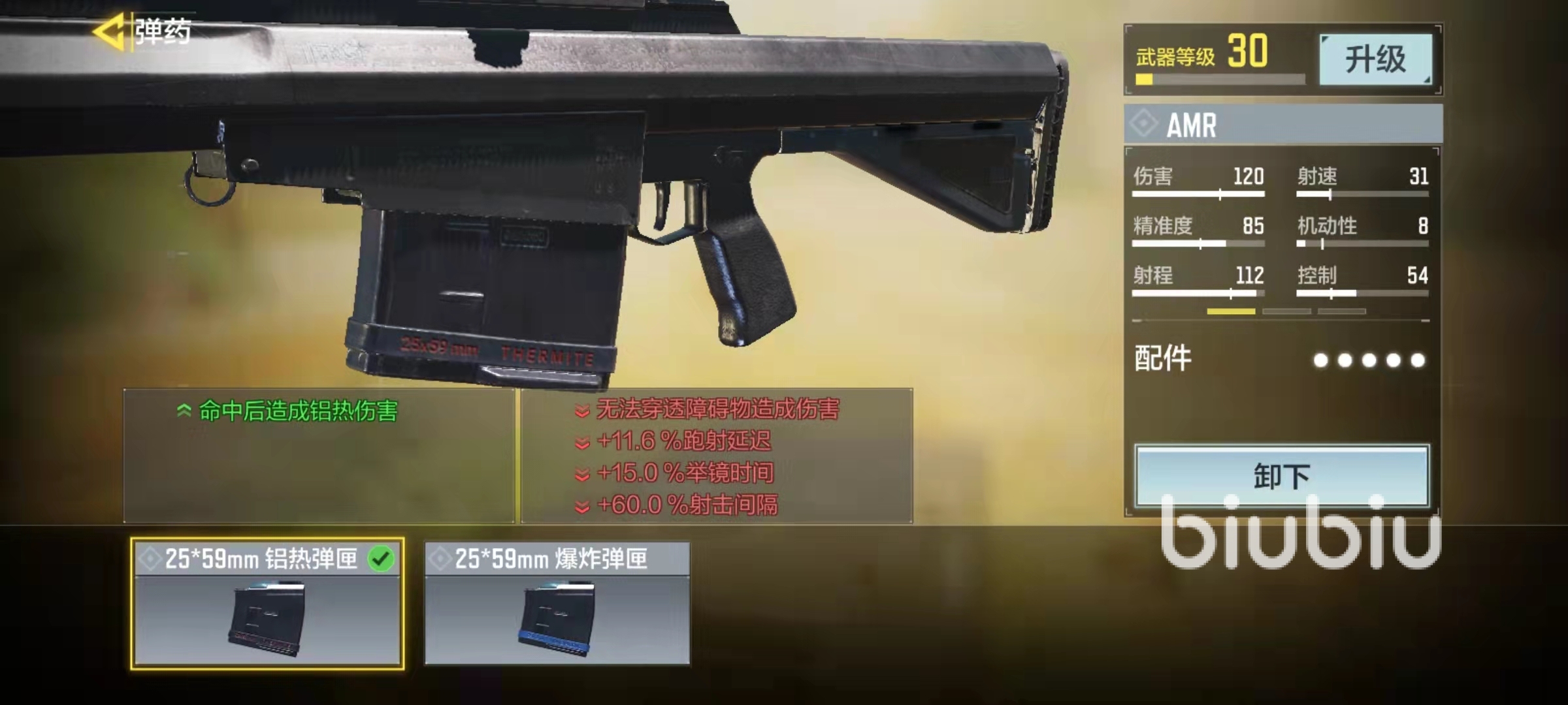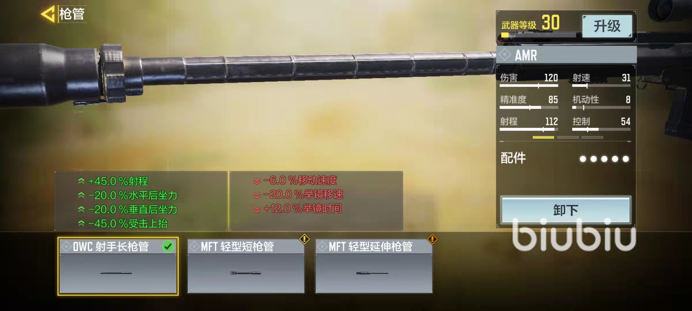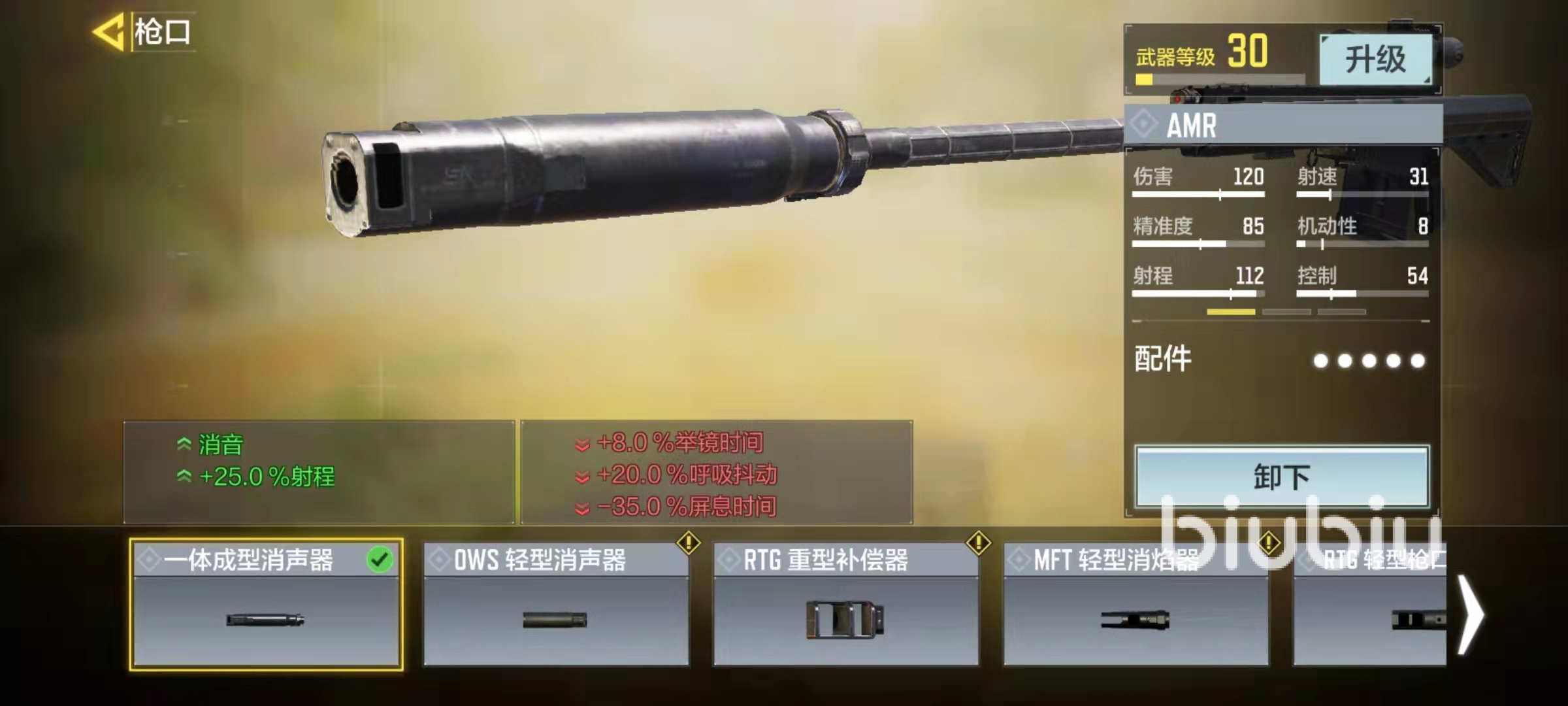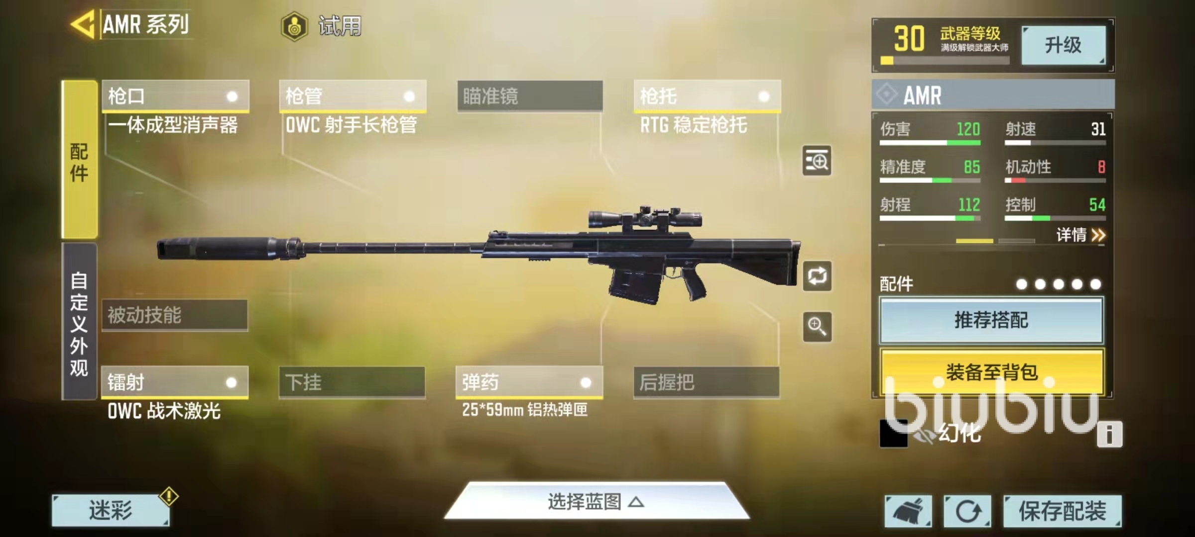 amr作為一把需要完成任務(wù)才能解鎖的槍械,自身是具有一定的優(yōu)勢的,從面板屬性來看,單發(fā)傷害達到了八十點,屬于狙擊槍中中等的傷害,值得稱道的是該槍的精準度,達到了六十二點,所以在射擊的時候會感到非常順暢,三十一點的射速也完全不影響輸出。在配件的搭配上,小編選擇的是遠距離穩(wěn)定射擊型的搭配,這也是眾多高手常用的配置。