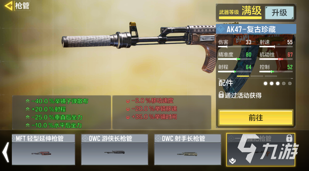 一體握把槍管:2022年更新中新增的配件,它可以減少瞄準時的子彈散布、子彈的有效射程、和少幅度的垂直、水平后坐力,讓AK47的穩(wěn)定性進一步增強,讓我們在中距離對射時擁有更大的優(yōu)勢,因此大家還是非常有必要搭配這個新配件的。