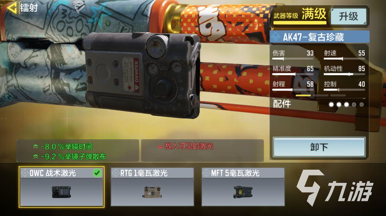 OWC戰(zhàn)術(shù)激光:該配件不僅可以為我們提供一個鐳射激光,還可以提供不錯的腰射精準度,因此非常適合我們在近戰(zhàn)時使用!