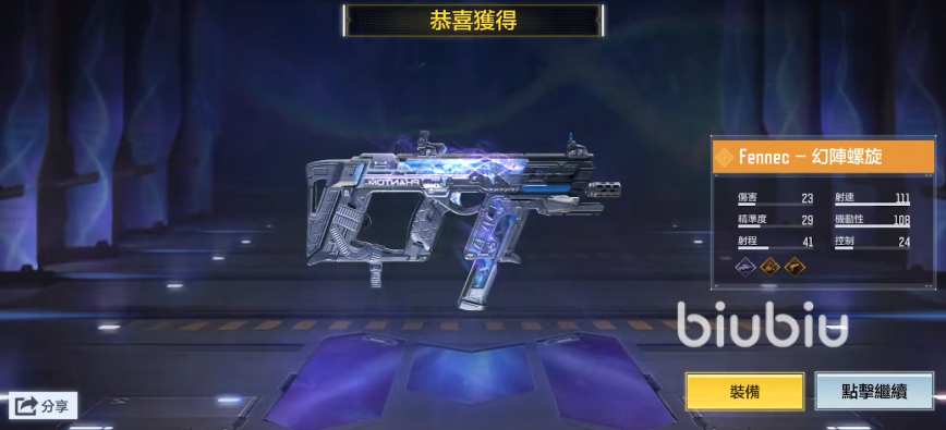 本次的Fennec-幻陣螺旋是一把個(gè)性鮮明的武器,外觀上來看,幻陣螺旋相比較其它傳說武器并沒有非常突出的地方,但是使用起來特效不晃眼,造型樸實(shí)無華但是實(shí)際使用體驗(yàn)絕佳。而幻陣螺旋的槍械屬性則非常獨(dú)特,可以看到它的射速和機(jī)動性都突破了100點(diǎn),這在使命召喚手游中是絕無僅有的。