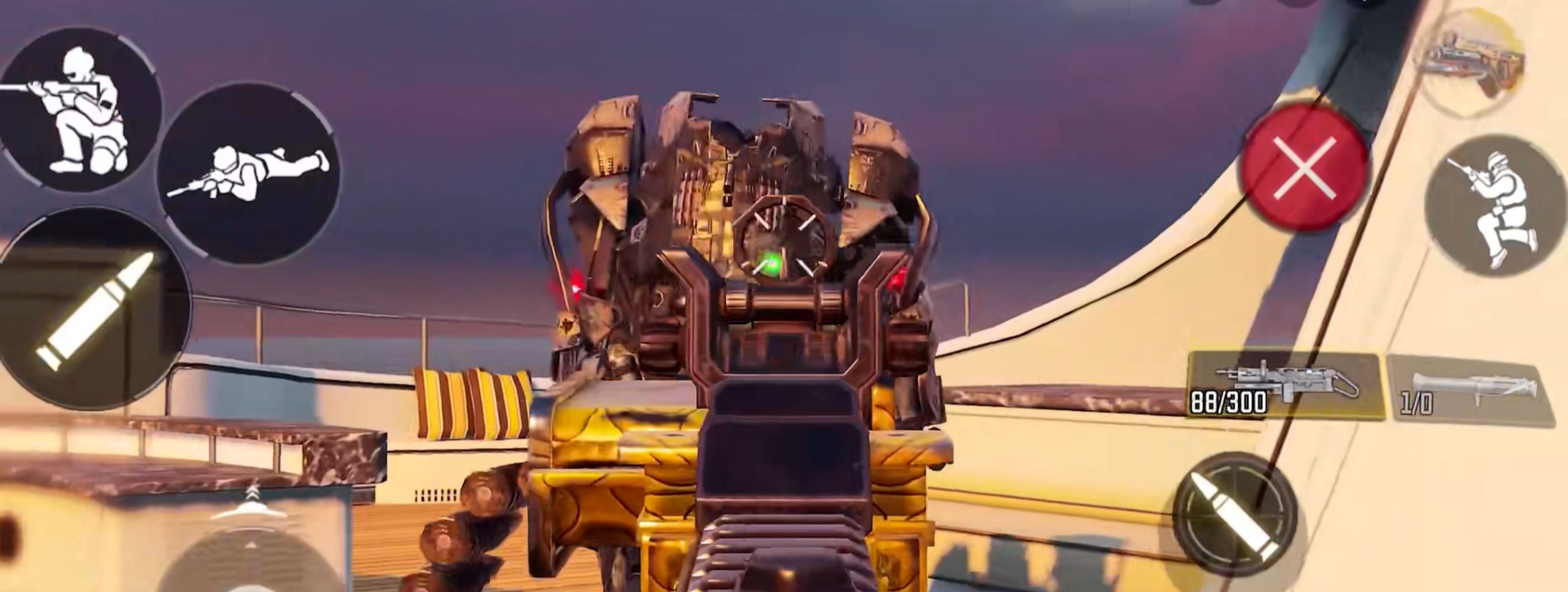 動能裝甲具有強(qiáng)大的火力系統(tǒng),左手是一把加特林,雖然是無限子彈,但是有過熱提示,在屏幕中會有一個曲線的白條,我們每射出一發(fā)子彈,白條里面會增長一絲紅色,當(dāng)紅色長滿了白條,就說明武器已經(jīng)過熱,無法使用,這個連殺獎勵缺點(diǎn)是體型過大,移動速度較慢,非常容易成為敵人的火力聚集點(diǎn)。