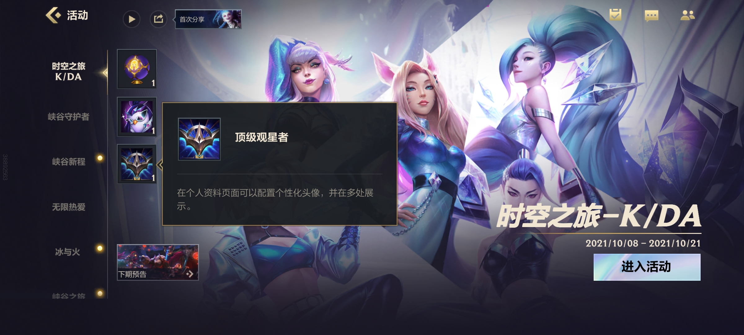 時空之旅KDA活動將在十月底結(jié)束,所以玩家們看到攻略之后要盡快進入游戲參與活動!