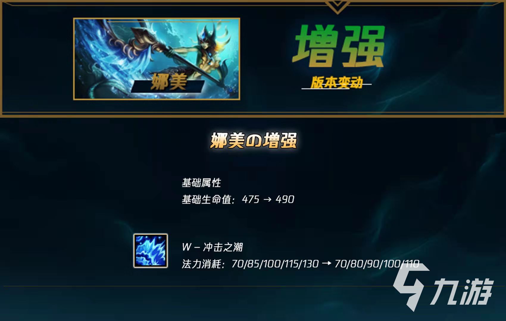 錘石一直被譽(yù)為英雄聯(lián)盟最完美的英雄,輔助錘石集保護(hù)和先手控制于一身,可以說(shuō)是軟輔和硬輔的完美結(jié)合。泰坦的控制能力非常強(qiáng),對(duì)線可以配合ADC打先手,也能配合打野gank,打團(tuán)的保護(hù)和開(kāi)團(tuán)能力也很不錯(cuò)。娜美登上這個(gè)版本則是因?yàn)?1.17版本自身的增強(qiáng),新版本娜美的基礎(chǔ)生命值提升,W技能藍(lán)耗大幅度降低。
