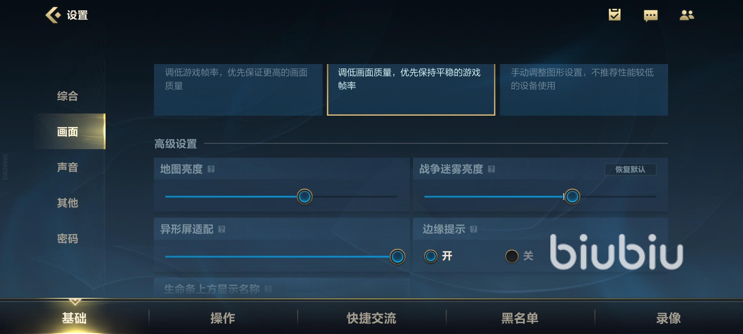 2、如果習(xí)慣端游畫質(zhì)的玩家可以把高級設(shè)置中的地圖亮度調(diào)低、戰(zhàn)爭迷霧也調(diào)低。這樣會更接近于我們端游的畫面習(xí)慣。