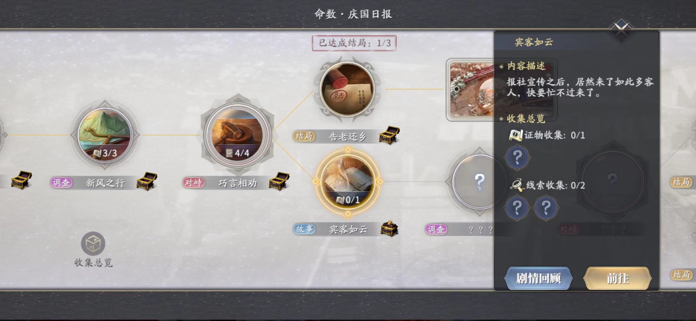 以上便是慶余年手游賓客如云攻略的全部內(nèi)容,希望為大家?guī)砹藛l(fā),順利通過任務,如果還想了解更多關于該游戲其他方面的內(nèi)容,歡迎大家繼續(xù)查看。