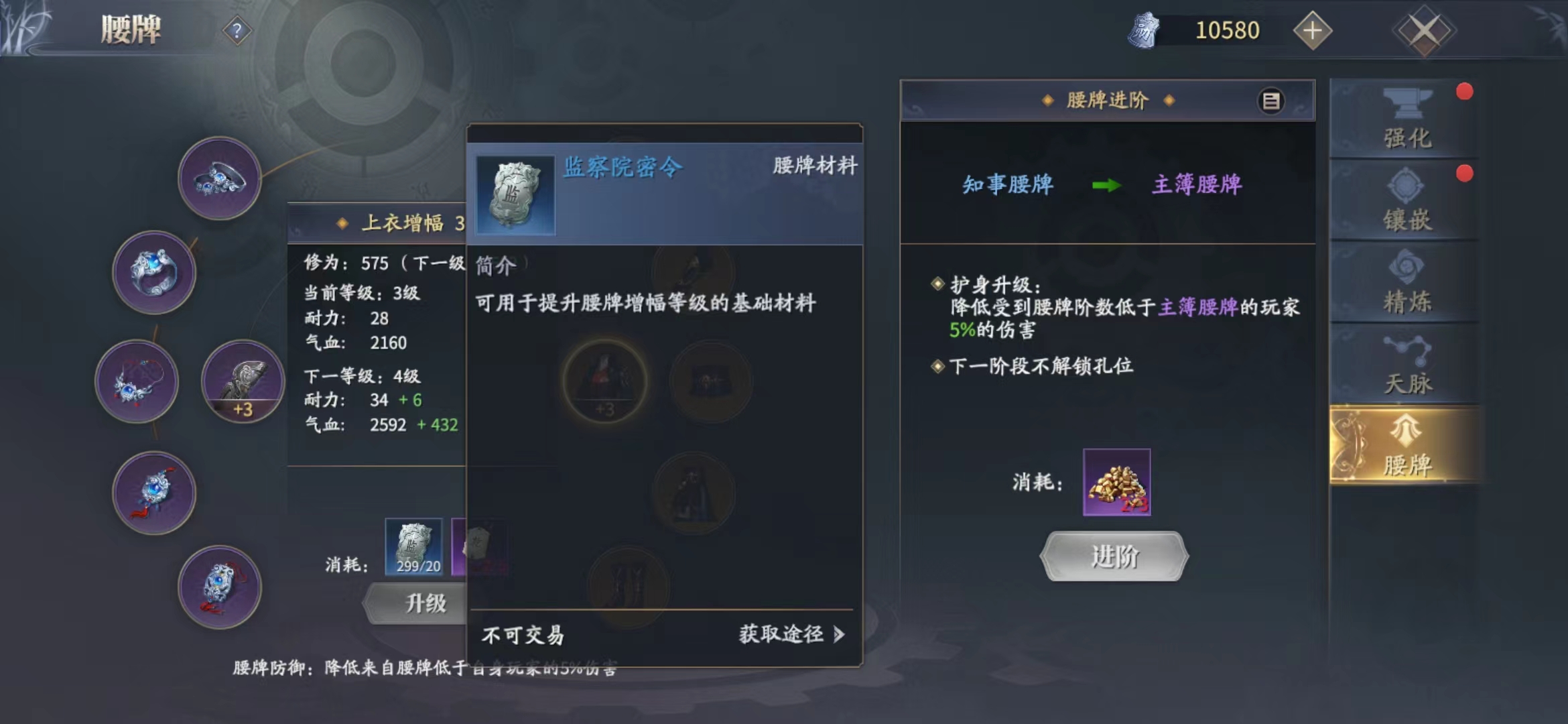 手鐲增幅需要達到都事腰牌等級