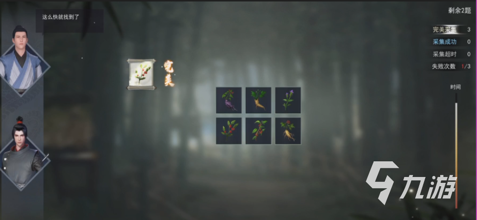 在采集的設(shè)定上是分為完美的采集和采集成功這兩個(gè)設(shè)定的,完美采集簡單來說就是在時(shí)間還沒有過三分之一的時(shí)候選擇正確就可以觸發(fā)完美采集。如果說過了三分之一的時(shí)間,同時(shí)在要求時(shí)間內(nèi)完成的話,那么就只是采集成功的一個(gè)獎(jiǎng)勵(lì)。時(shí)間可以在右側(cè)這里看到,有一個(gè)進(jìn)度條的提示。