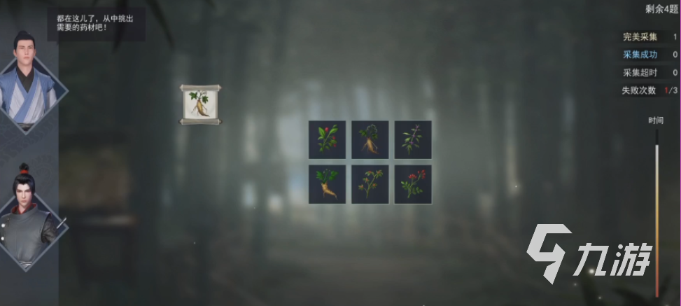 先來了解一下采集任務(wù)的基礎(chǔ)機(jī)制,這個(gè)任務(wù)玩法和出題玩法有一點(diǎn)類似,每次任務(wù)都有五道題目要玩家來完成。在出題的時(shí)候界面中的圖畫會緩慢的打開,而玩家要根據(jù)看到的藥材樣子來進(jìn)行選擇,選擇正確的話就可以獲得獎(jiǎng)勵(lì),選擇錯(cuò)誤的話會累計(jì)失敗的次數(shù),失敗累計(jì)三次之后就無了。