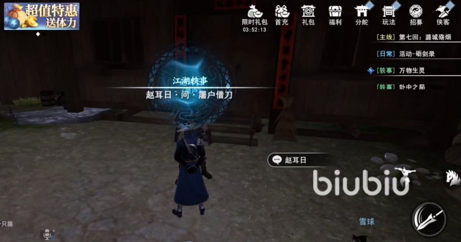 2、劇情內(nèi)容:秩事的內(nèi)容是屠戶想要向王寶丁借刀,但是王寶丁不愿意將刀借給趙耳目,然后兩個(gè)NPC就一直進(jìn)行著辯論。