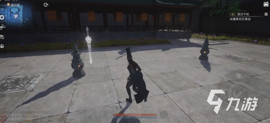 石燈任務(wù)在開(kāi)啟之后會(huì)進(jìn)入到對(duì)應(yīng)的任務(wù)場(chǎng)景中,在場(chǎng)景里面可以看到有四個(gè)石燈的機(jī)關(guān)。這個(gè)任務(wù)簡(jiǎn)單來(lái)說(shuō)就是要玩家將四個(gè)石燈推動(dòng)到對(duì)應(yīng)的位置上去,但是任務(wù)卻沒(méi)有提示準(zhǔn)確的位置,這就要依靠玩家來(lái)慢慢摸索了。