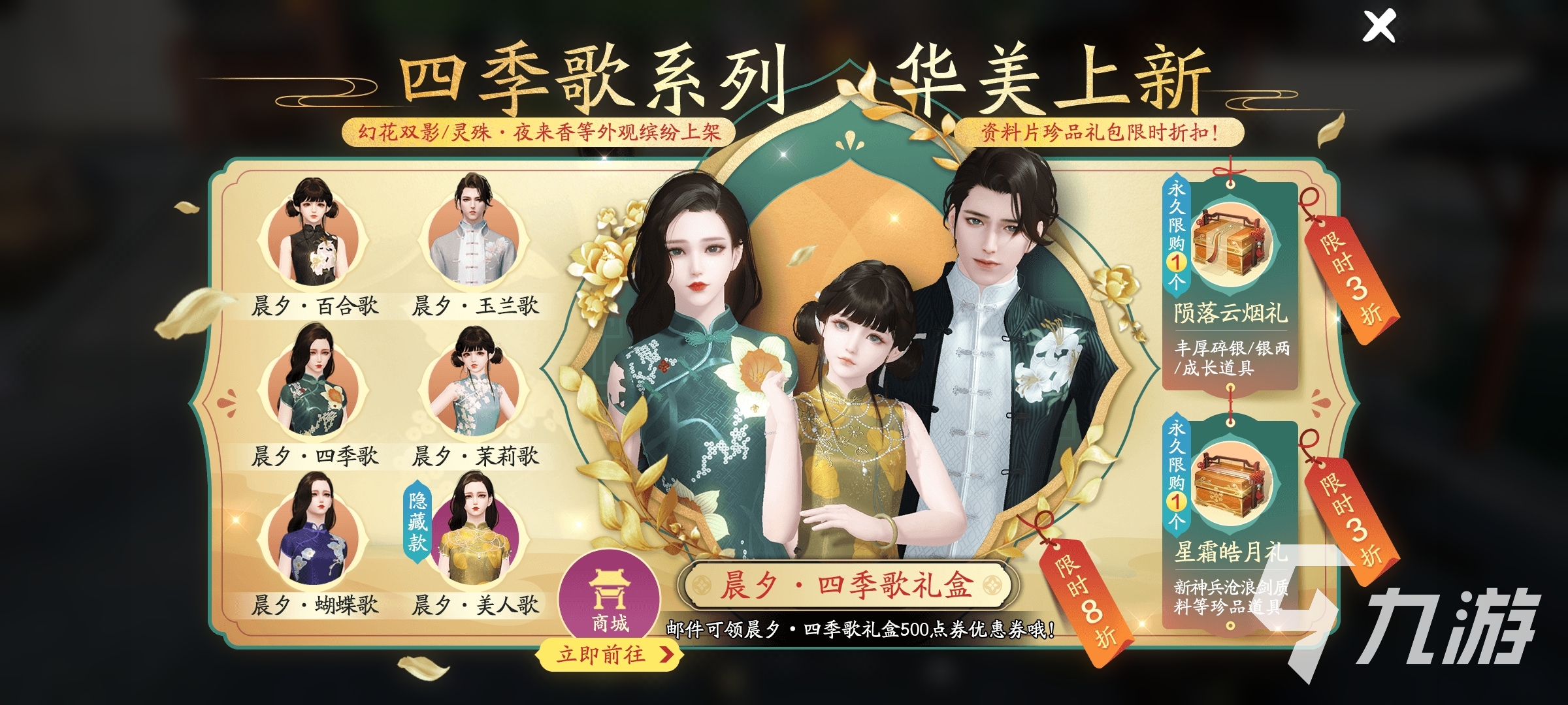 隕落云煙禮盒主要開(kāi)出的是常用的成長(zhǎng)資源,四盟、江湖質(zhì)料自選等,而且這個(gè)禮包是綁點(diǎn)購(gòu)買(mǎi)的,只要1888綁點(diǎn),值得一沖!四季歌禮盒比較特殊,不是道具材料禮包,是外觀禮盒。玩家購(gòu)買(mǎi)后會(huì)隨機(jī)開(kāi)出6種四季歌時(shí)裝的其中一套,也就是衣服加鞋子,至于頭發(fā),這是6套共用的,在開(kāi)啟第一個(gè)四季歌禮盒時(shí)就會(huì)獲得了。作為本次版本更新的新時(shí)裝,還是很具有中國(guó)特色的旗袍元素,外觀黨千萬(wàn)不要放過(guò)哦。