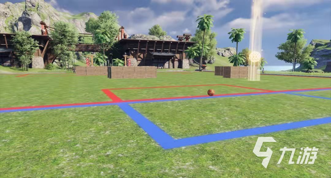比賽開始,玩家將會在中場開球,球場南北兩段各有一個球門,玩家將球踢入對手的球門即可獲得分數。進入球門一定的范圍后,防守方將獲得一定的增益效果,進攻方則會受到的一定的減益效果。所以只要進入對手禁區(qū),就爭取快速破門不要太粘球。