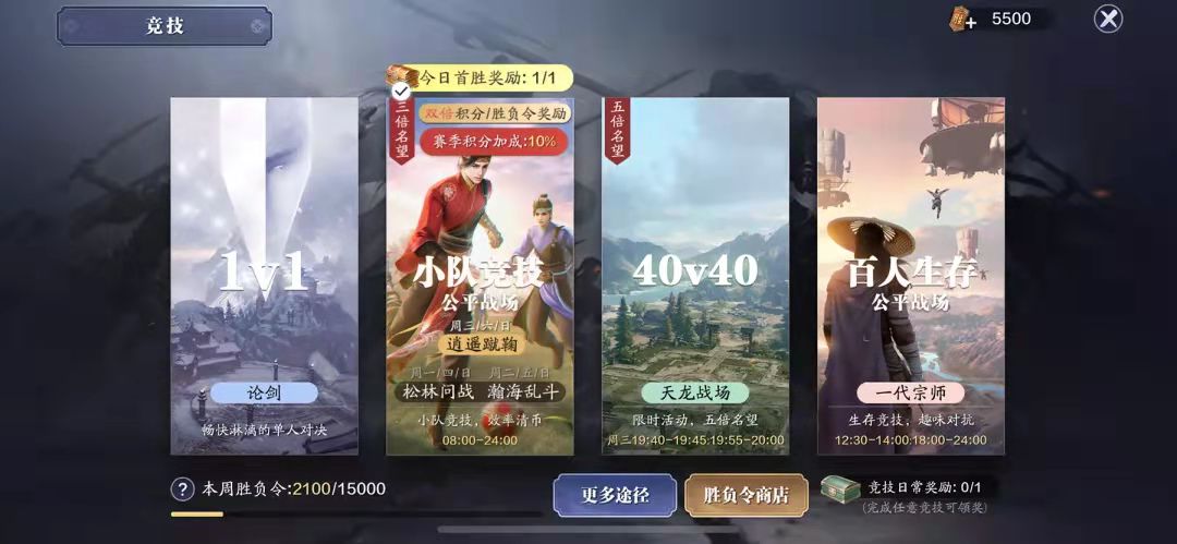 功夫足球只在每周三、周六、周日開放,球場內的對局玩3V3的公平競技模式,玩家可以通過單人或者組隊進入球場。同時在功夫足球中每周還有不同的對局任務刷新,玩家只要完成任務后都可以獲得大量的隨心和玄天石母,甚至是金色砭石。