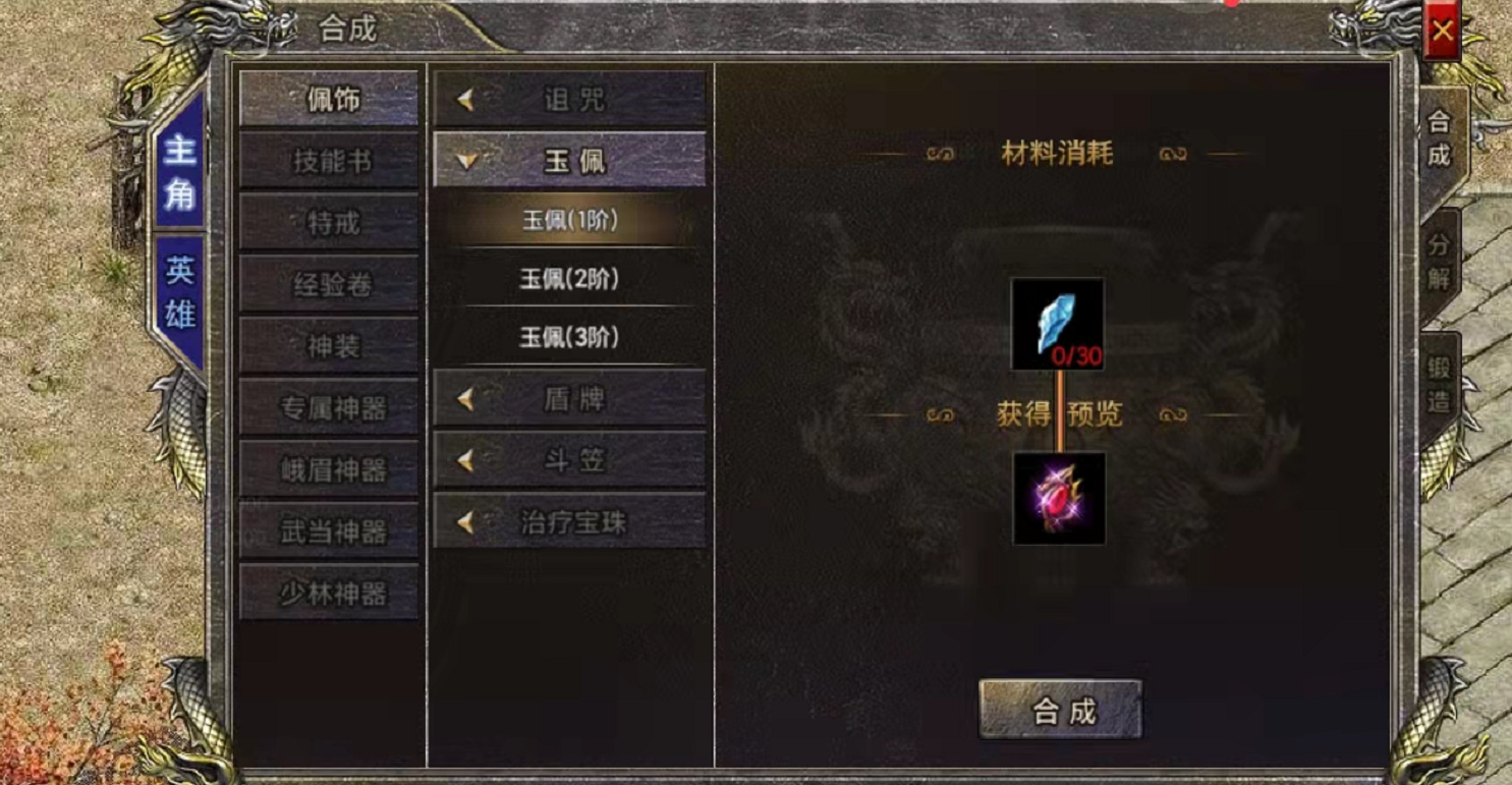 玩家如果想要得到更高級(jí)的玉佩,就需要不斷地將玉佩(1階)進(jìn)行升級(jí),從而得到更加高級(jí)的玉佩。