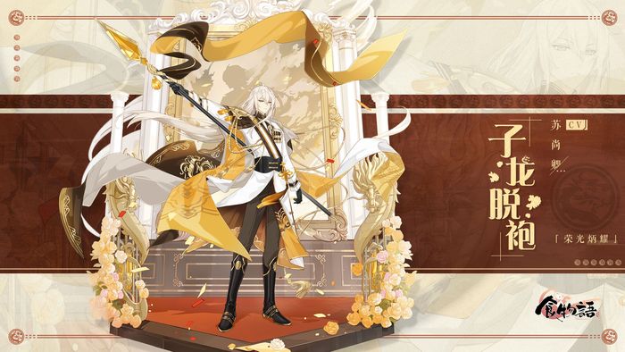 子龍脫袍·榮光炳耀是一款金色,白色和棕色為主的一款皮膚,角色白色的頭發(fā),白色的上衣,棕色的褲子和黑色的長靴,手中是一把金色的長槍,整個人都特別貴氣,太帥了。在游戲更新后就可以在月俸商店購買了,這款皮膚售價158元,里面包含了子龍脫袍專屬時裝·榮光炳耀、時裝專屬頭像框、300金玉,還可以激活180天月俸時長,總共獲得預計18300金玉。