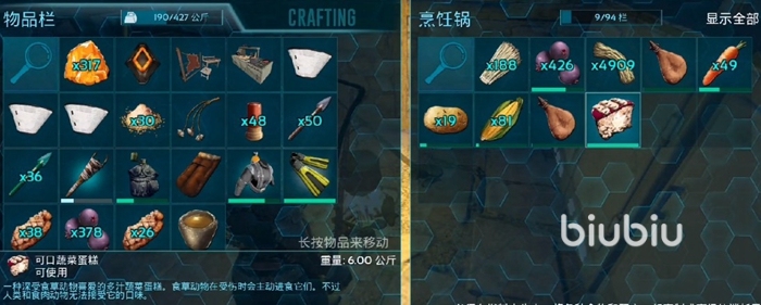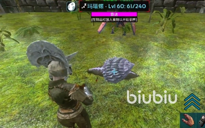 在野外我們尋找到瑪瑙螺之后建議直接使用翼龍將瑪瑙螺帶回去,然后使用拳頭或者是長管獵槍將其擊暈,因為瑪瑙螺的生命值是比較低的。打暈之后我們直接塞入飼料就可以進行馴服了,馴服的過程很快,所以不用太過于擔(dān)心。馴養(yǎng)瑪瑙螺的時候建議使用蔬菜蛋糕,制作蔬菜蛋糕需要水袋、4份樹脂、2份蜂蜜、25個纖維、4個興奮劑、2個胡蘿卜、2個土豆以及2個玉米。