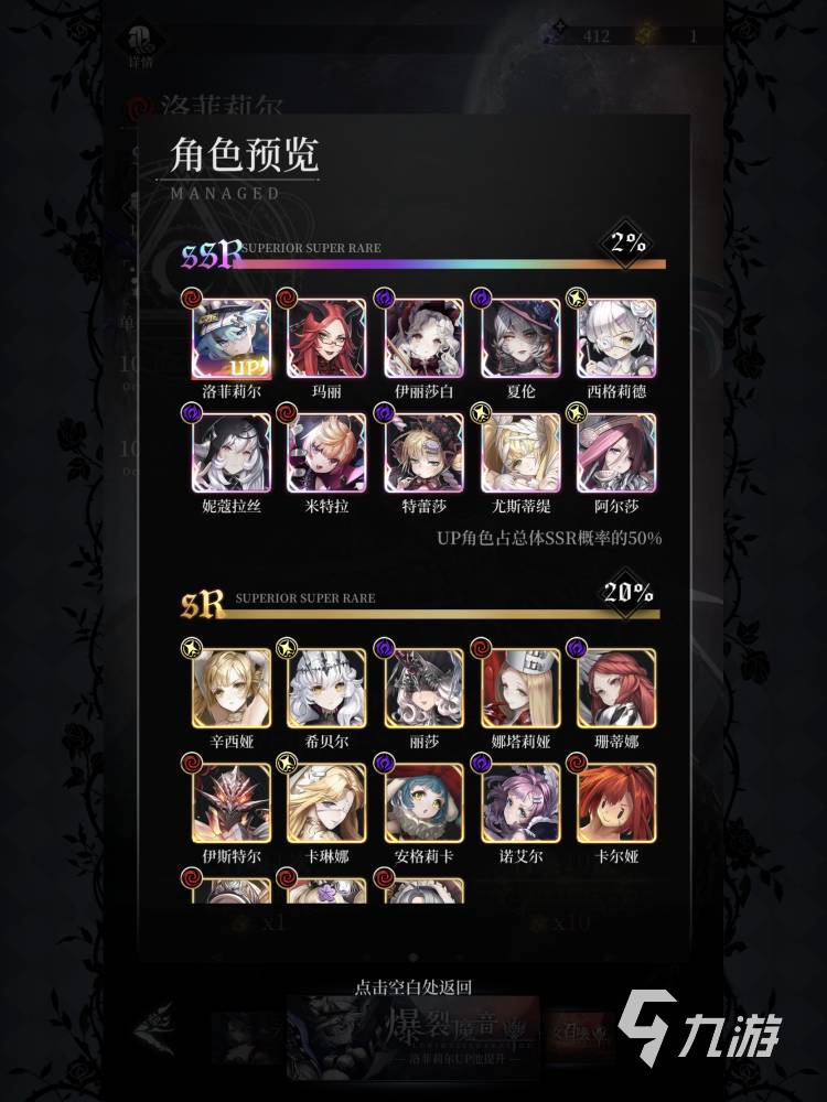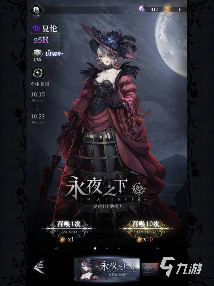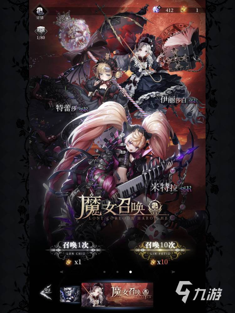 想要抽到ssr角色大家就需要來到主頁右下角的召喚卡池,一共分為永夜之下夏倫卡池,爆裂魔音up卡池,最后一個(gè)就是普通的魔女召喚卡池。