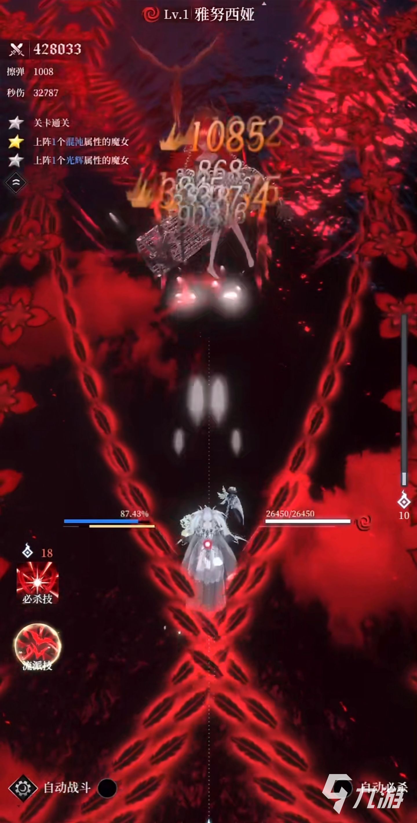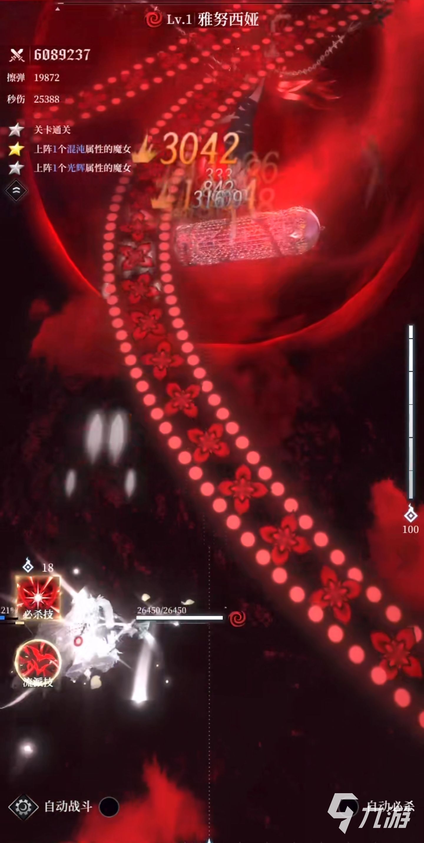 第一個關(guān)卡需要擊敗基露卜,第二個關(guān)卡的boss是奧利佐,而第三個就是我們這個關(guān)卡的主角,也就是紅色雅努西婭,那么該如何操作魔女才能通過最難的這一關(guān)卡呢?總體思路為開局雅努放流派技,然后秒切安娜輸出,看到黃條滿了就把角色秒切出來放蓄力,然后再換回安娜輸出(蓄力只用一瞬間就能放,所以迅速點兩下就行了),三階段交叉彈部分boss無敵,把輸出最低的希貝爾拉出來防止安娜暴斃,如果輸出順利boss開不了第二個交叉彈就沒血了。