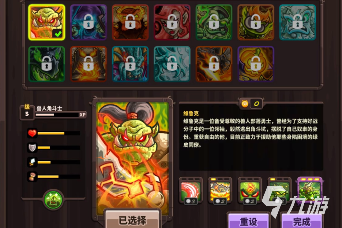 英雄天賦要先點(diǎn)滿最后的技能點(diǎn)數(shù),獸人角斗士的大招是召喚小兵在后方進(jìn)行投擲攻擊,其余技能在前期可以任意加點(diǎn)。