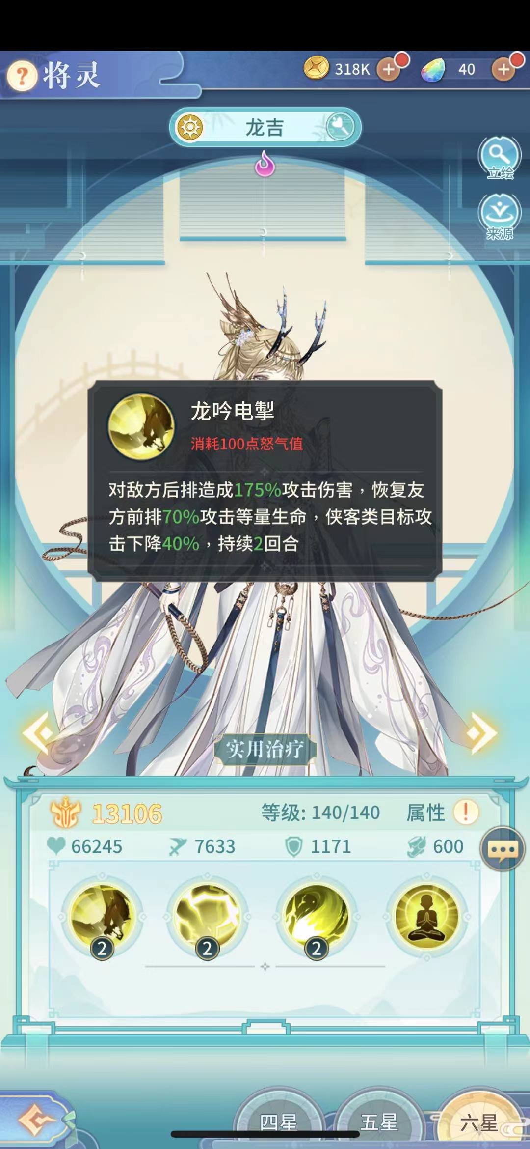 龍吉技能龍吟電掣,在釋放以后,能夠?qū)撤降暮笈旁斐?75%的攻擊傷害,同時還可以恢復(fù)友方前排70%攻擊的等量生命,關(guān)鍵是還能夠使對方俠客類目標(biāo)的攻擊下降40%,效果持續(xù)2回合,在這個品質(zhì)的將靈里面,效果還是很不錯的了。