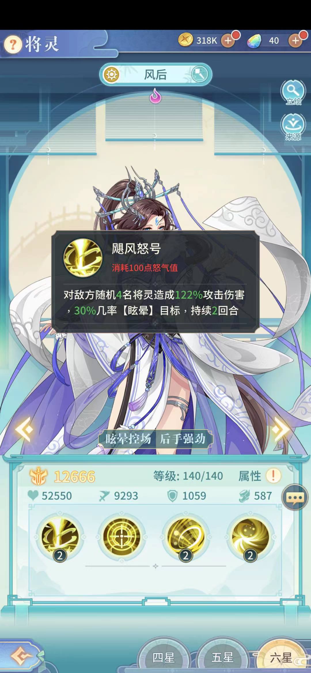 風(fēng)后的技能颶風(fēng)怒號,在釋放以后能夠?qū)撤诫S機(jī)的四名將靈造成122%的攻擊傷害,關(guān)鍵是還有30%的幾率能夠眩暈?zāi)繕?biāo),這個效果能夠持續(xù)兩個回合。