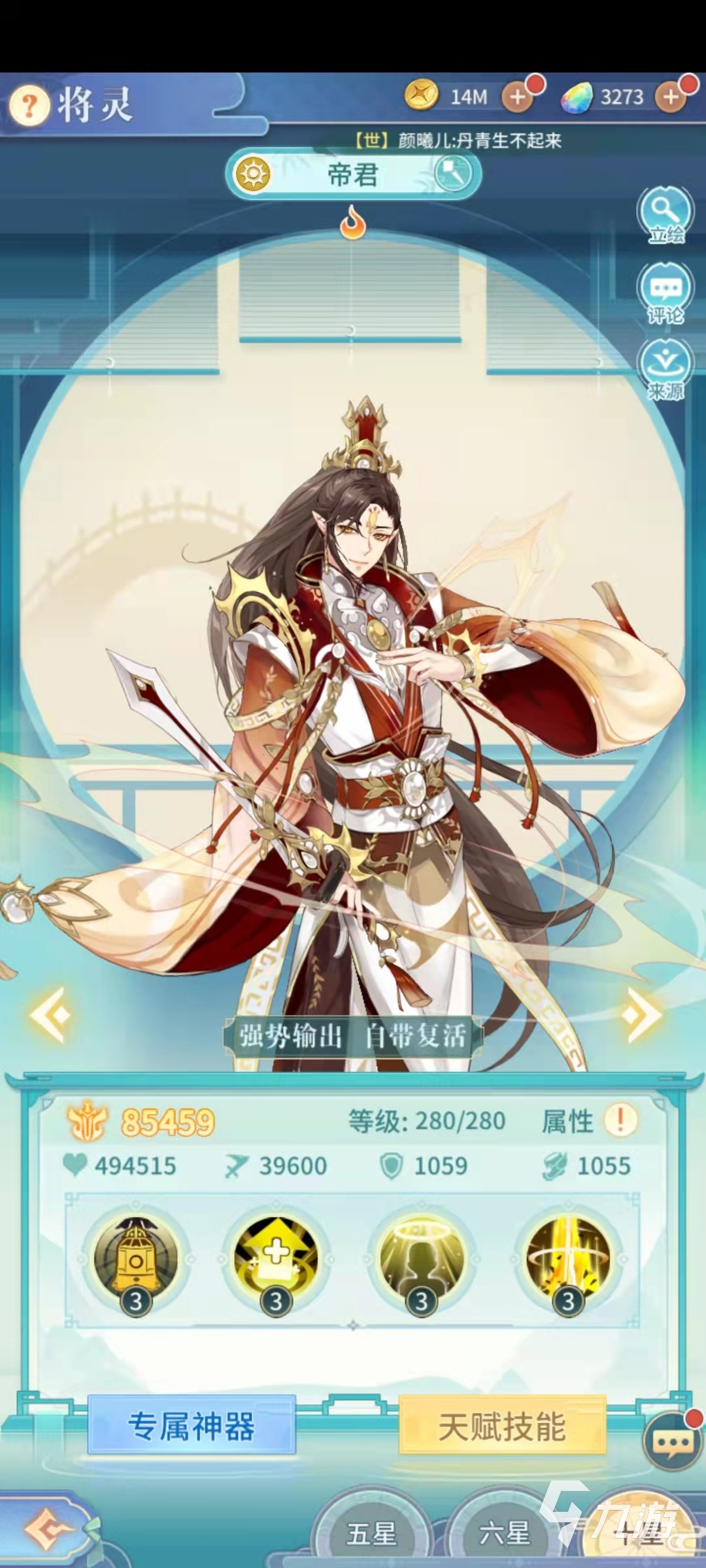 帝君的被動(dòng)技能凈世,可以在第一次死亡之后了立即復(fù)活,而且能恢復(fù)大半的血量,剛復(fù)活的時(shí)候就能打出一次群體傷害,并且增加暴擊,速度等屬性。媧皇屬于輔助型將靈,技能可以傷害對方全體角色,并且為己方全體將靈增加最終傷害和暴擊率等,并且還能恢復(fù)己方全體的血量。
