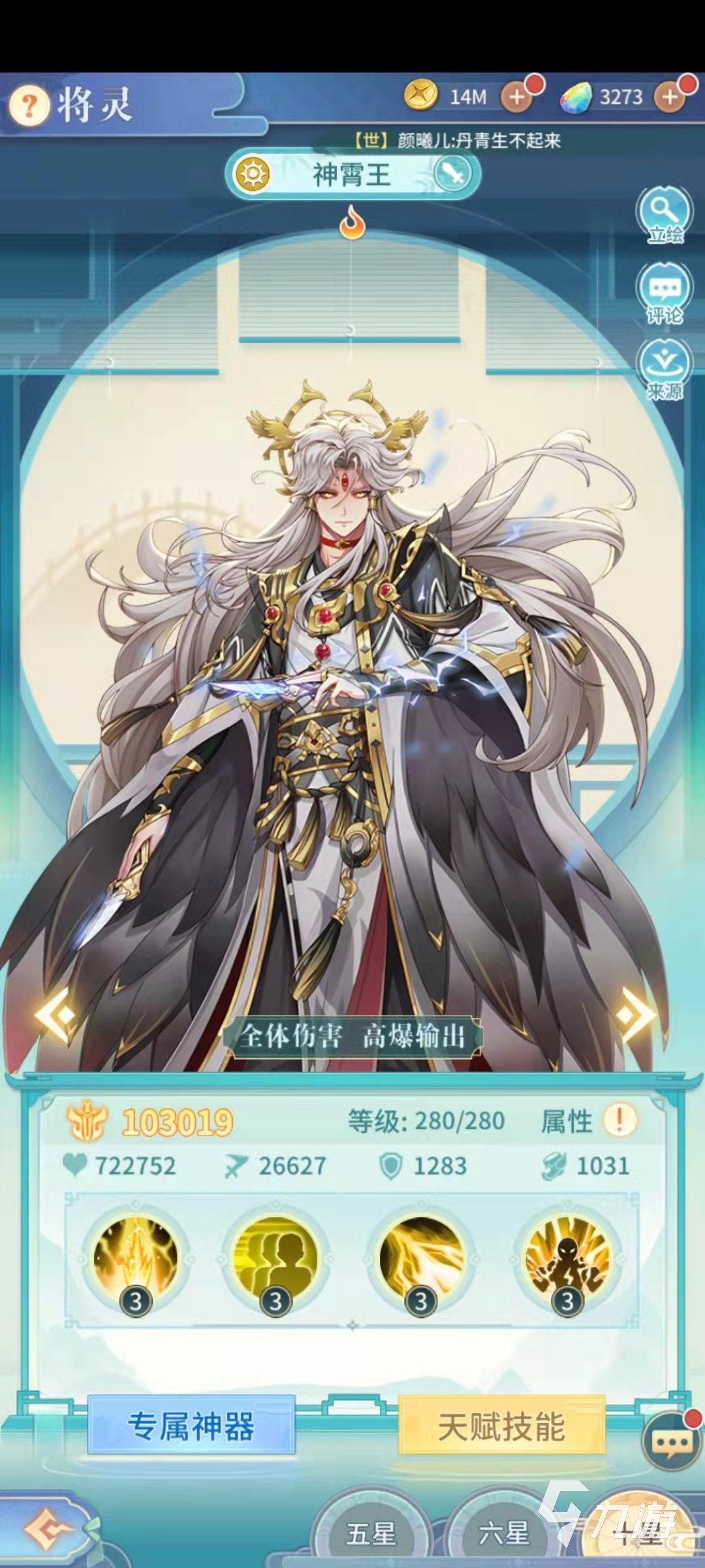 神宵王是這一套陣容中輸出最高的一個(gè),而且是群體輸出,技能九天雷劫除了一次性傷害外,還能附加暴擊印記,提升友軍的全體暴擊率,一旦觸發(fā)暴擊,傷害就可以成倍的提升。