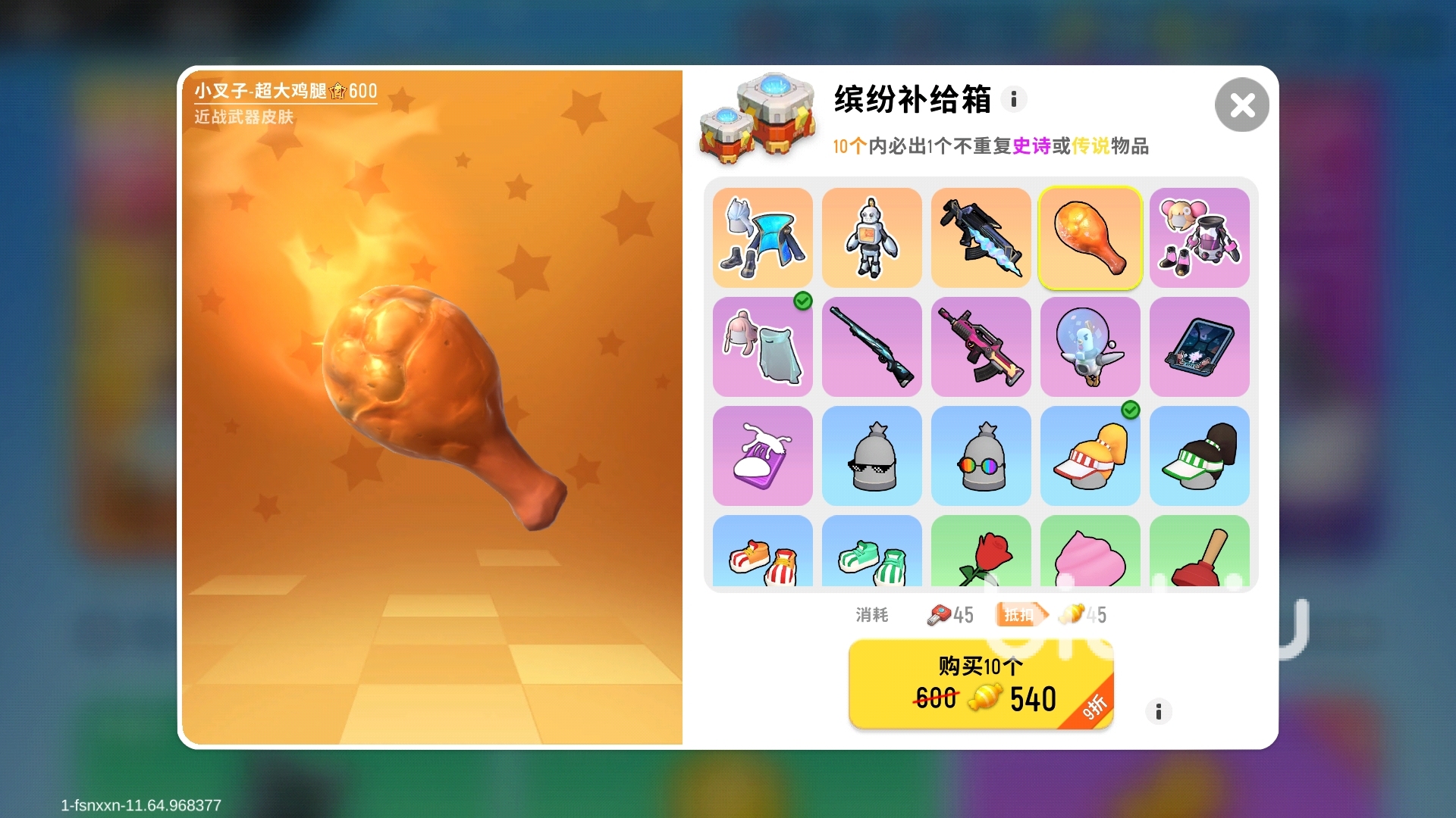 武器皮膚二:小叉子-超大雞腿(傳說級)