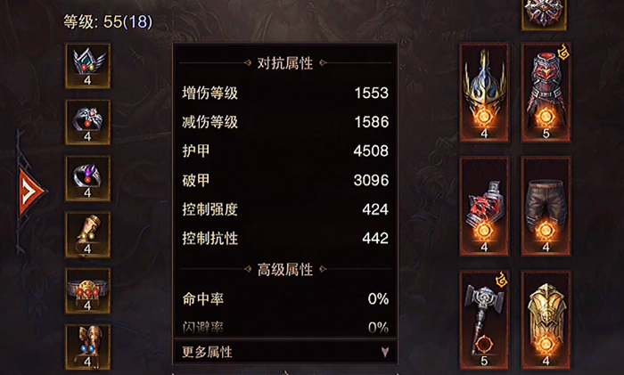 首先我們要知道,在我們挑戰(zhàn)副本的時(shí)候一般都會(huì)有一個(gè)推薦等級(jí),但是在暗黑破壞神不朽中寫明的是我們的增減傷等級(jí),那么我們?nèi)绾尾榭醋约旱脑鰷p傷等級(jí)呢?我們打開自己的背包,這里我們可以看到自己的ID下方是人物等級(jí),人物模型下方有一個(gè)切換屬性,點(diǎn)擊下方的更多屬性,在這里我們就可以看到自己的增傷等級(jí)以及減傷等級(jí)了。