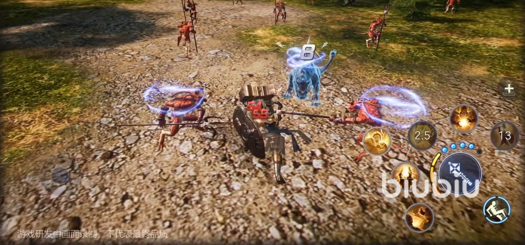 2、天降神罰:跳躍攻擊指定的目標(biāo),第一段造成擊退效果,如果本次攻擊能讓敵人倒地的話,那么在倒地之后還會附加一個暈眩效果。這是一個攻防一體的技能,如果敵人沖我方后排的話圣騎士可以用這個技能來擊退敵人。而主動出擊的時候也可以選擇想要控制的單位來進行攻擊,使用方式非常靈活。