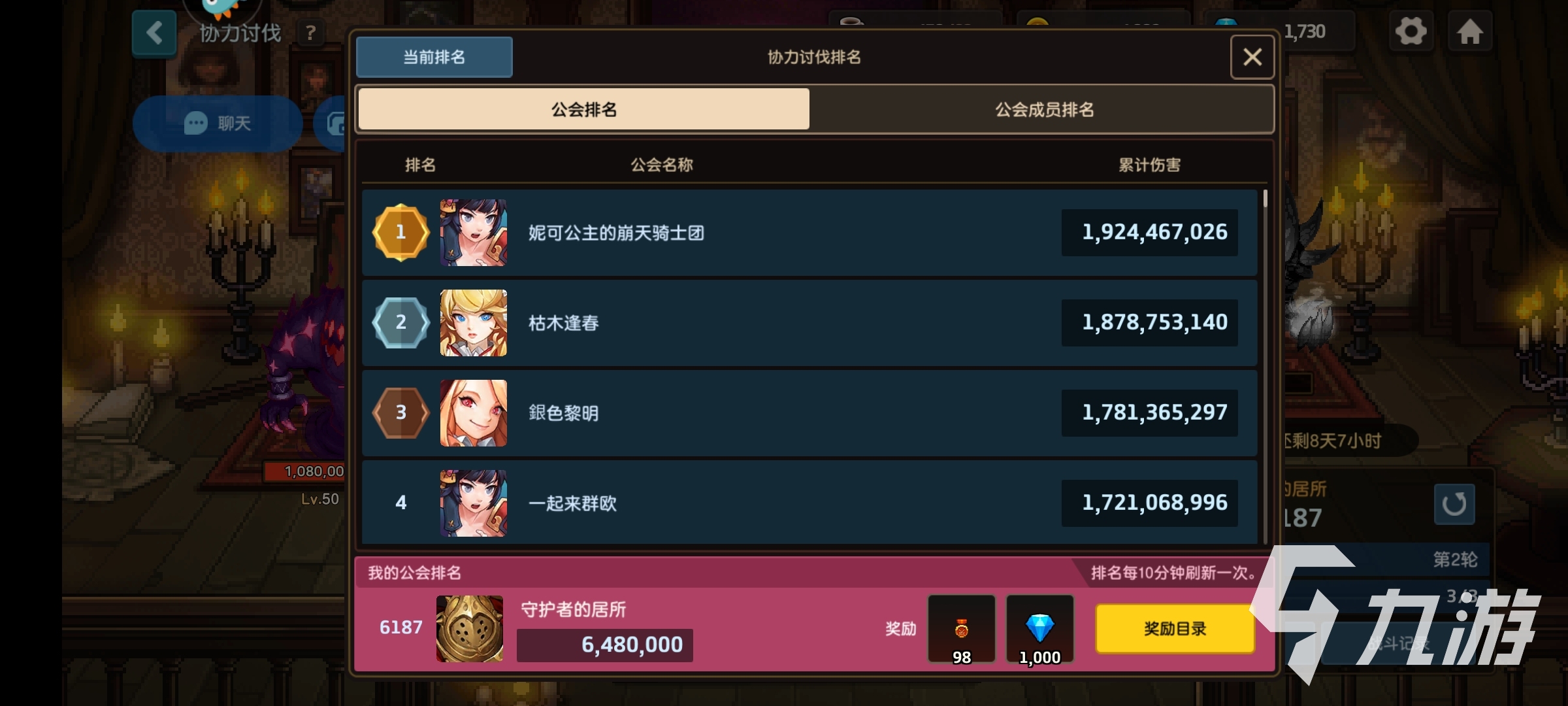 系統(tǒng)會根據(jù)各個公會在討伐活動期間內(nèi)造成的傷害,進(jìn)行一個公會協(xié)力討伐的名次,在活動結(jié)束后,只要是參與的公會都可以獲得排名獎勵。