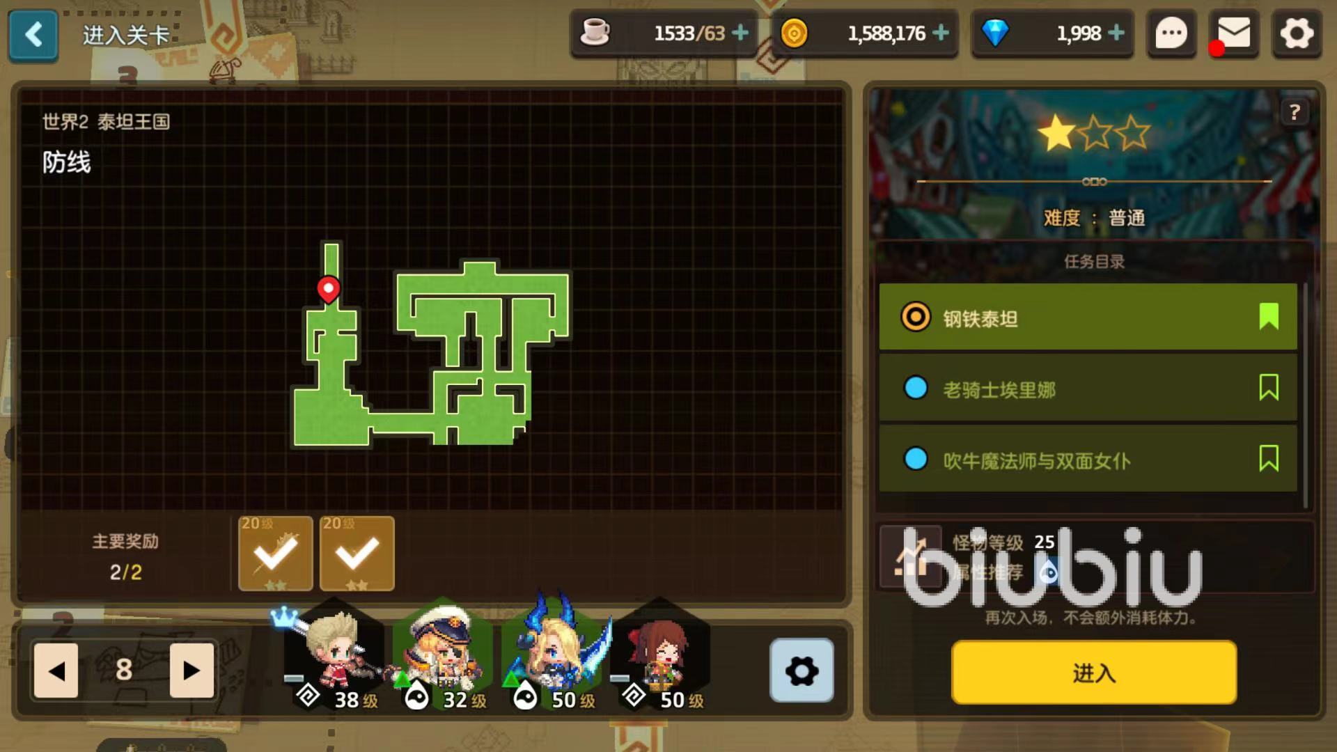 玩家進(jìn)入游戲后,可以在探索中看到各種不同的世界,選擇世界二中的第4關(guān)卡防線,其中包括侵略者軍需倉庫任務(wù),通過完成此任務(wù)可以成功獲得相應(yīng)道具。
