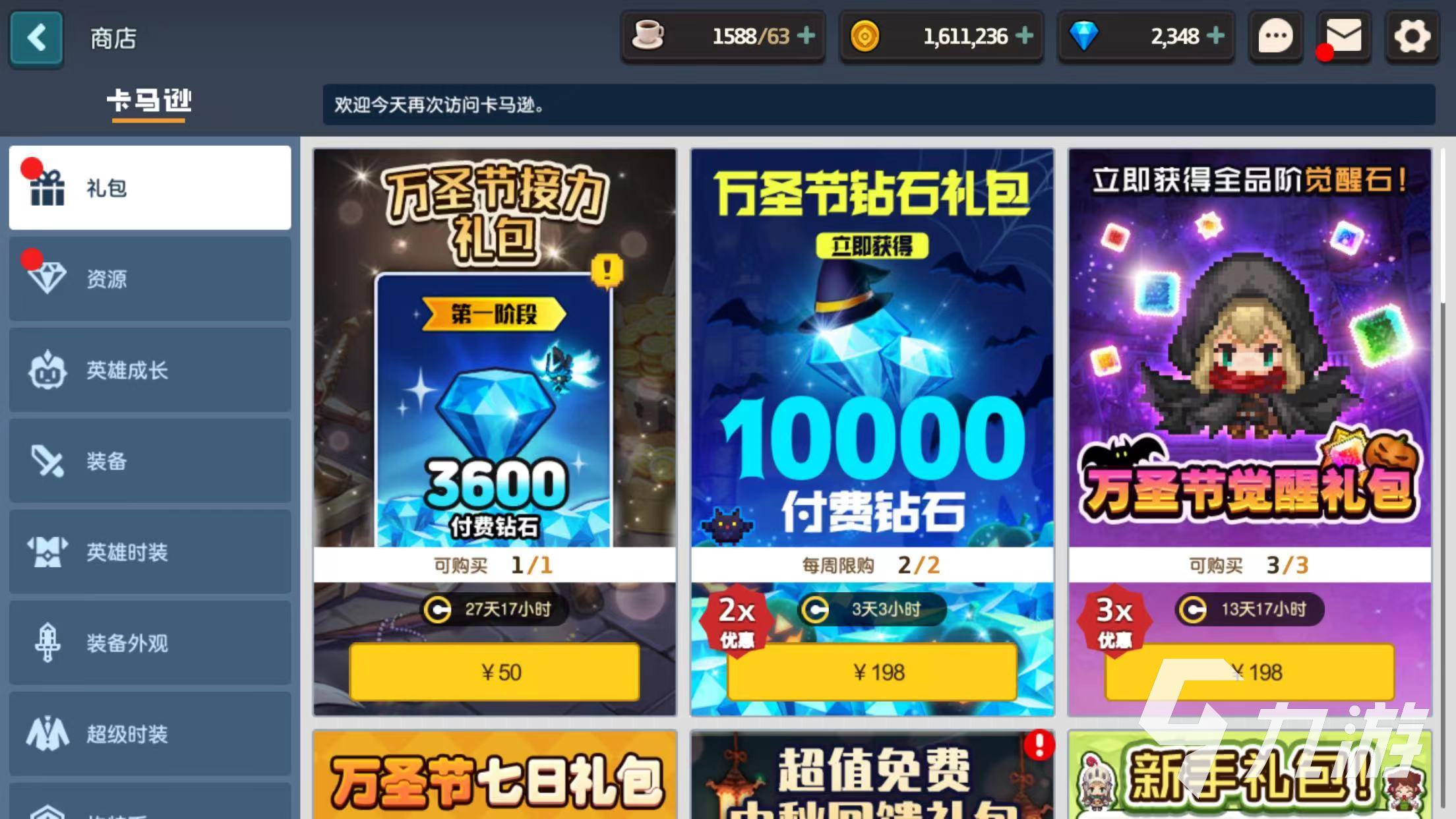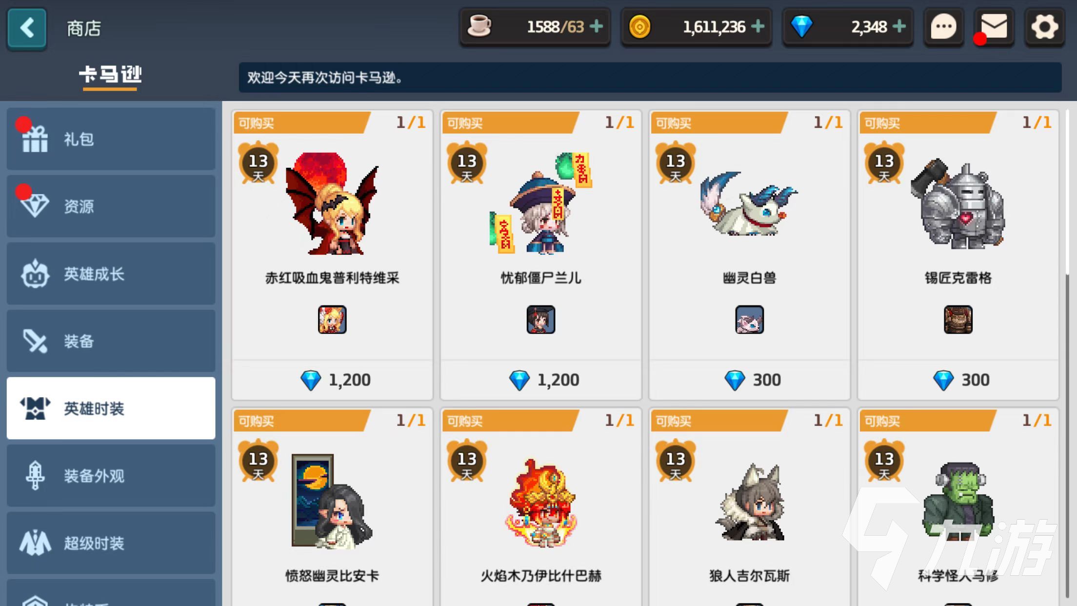 玩家進入游戲后,可以在主頁面中看到卡馬遜商店更新活動,在10月28日開啟新時裝上架和禮包上架活動,在新時裝中增加赤紅吸血鬼普利特維采,憂郁僵尸蘭兒,憤怒幽靈比安卡,火焰木乃伊比什巴赫,幽靈白獸,錫匠克雷格,狼人吉爾瓦斯,科學(xué)怪人馬修,雪原巫女卡瑞娜,憤怒護士吉蒙里,飛行員瑪麗娜,未來騎士尤金,三重紅歐格瑪,超級明星瑞皮娜,千手阿伊莎,海岸少女拉碧絲,夏日海灘蘭兒,海灘救生員百獸,高階魔族,藍騎士(女)。