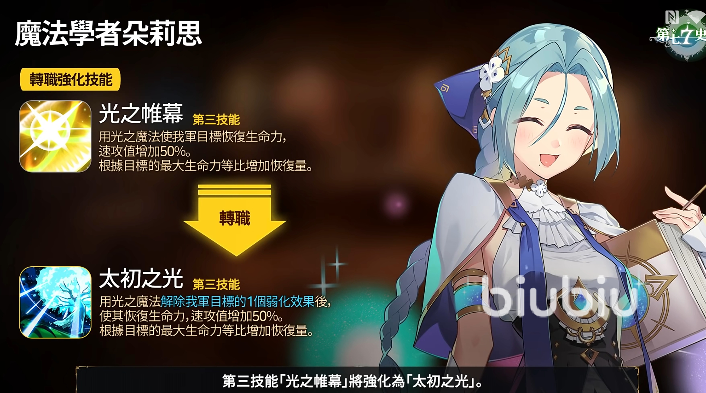 1、轉(zhuǎn)職強(qiáng)化技能:光之帷幕升級(jí)轉(zhuǎn)職為太初之光,這樣就可以額外解除敵人的弱化效果了。