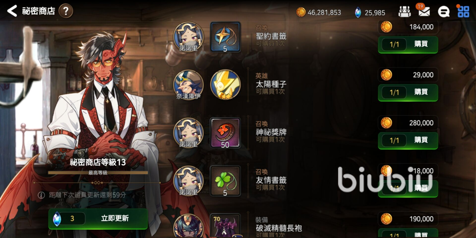 1、4—5*英雄召喚券:1200個天空石兌換一個,期間內(nèi)每個帳號可購買1次。