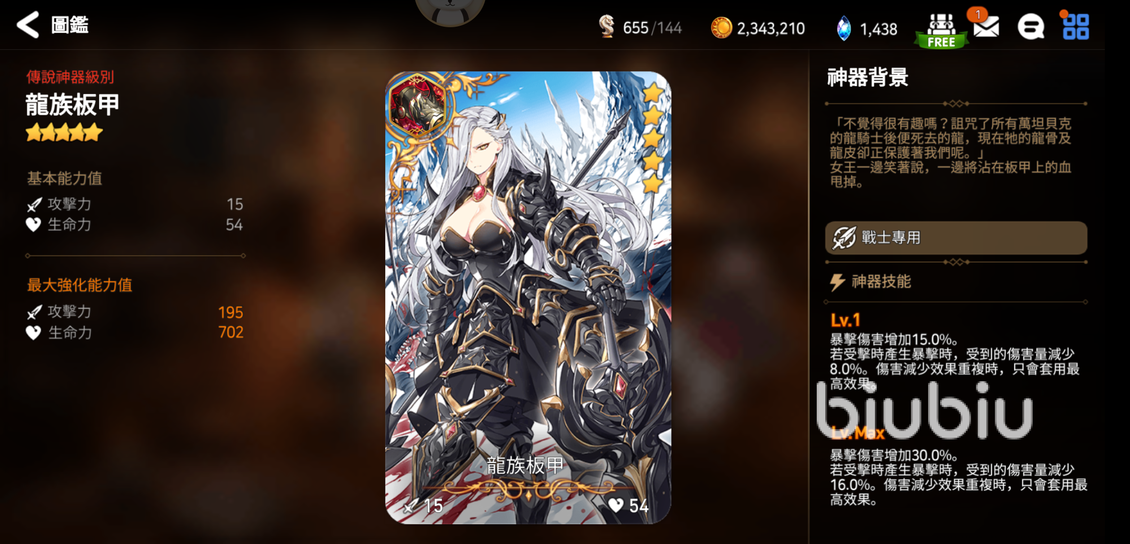 2、板甲算是一個萬金油的神器,使用率非常的高,幾乎所有角色都能帶。