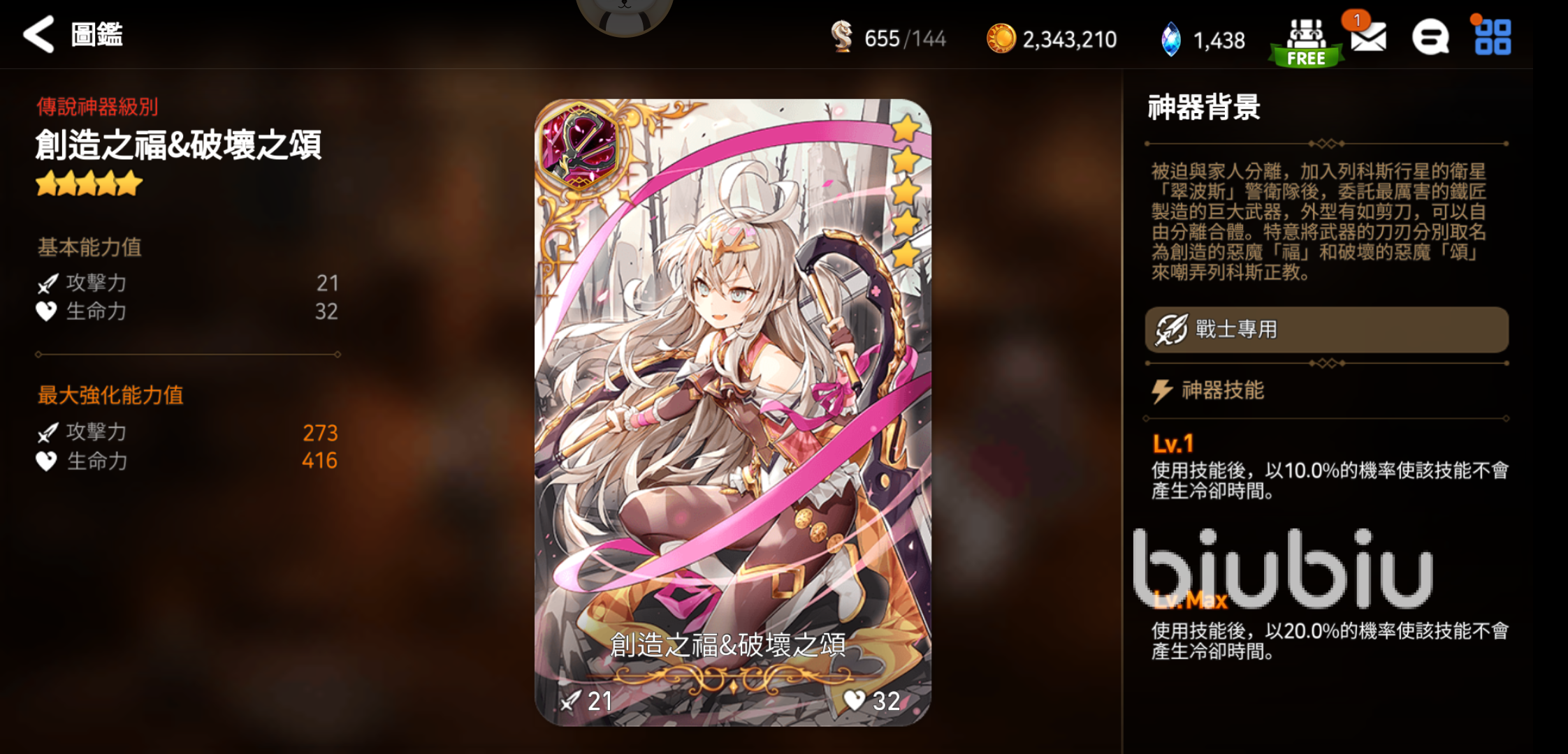 1、剪刀的效果是在使用技能之后,有一定幾率使該技能不會產(chǎn)生冷卻時間,神器滿級后最高可以到達(dá)20%幾率。