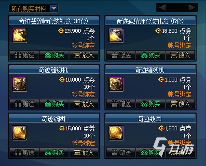 首先大家需要開啟奇跡縫紉機這個道具,此道具需要從商城里面購買,價格的話是10塊錢一個。然后開啟需要消耗兩個毛線團道具。毛線團大家可以直接購買,價格是15塊錢一個,此外也可通過分解時裝獲取。