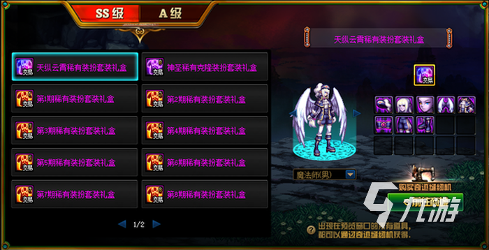 開啟之后小伙伴們可以拿到隨機的裝扮套裝禮盒,而這次的套裝禮盒是可以直接交易的,大家可以按照自己的喜歡,去拿到之前絕版的服裝。開啟之后的獎勵分為兩種檔次,ss級就是天空套了,a級就是國慶以及春節(jié)套等,俠客團套屬于a級系列里面的。
